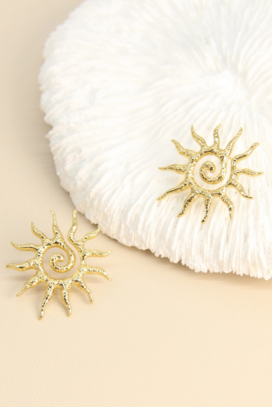 Affichez un style audacieux avec ces boucles d’oreilles soleil en acier inoxydable, dorées.