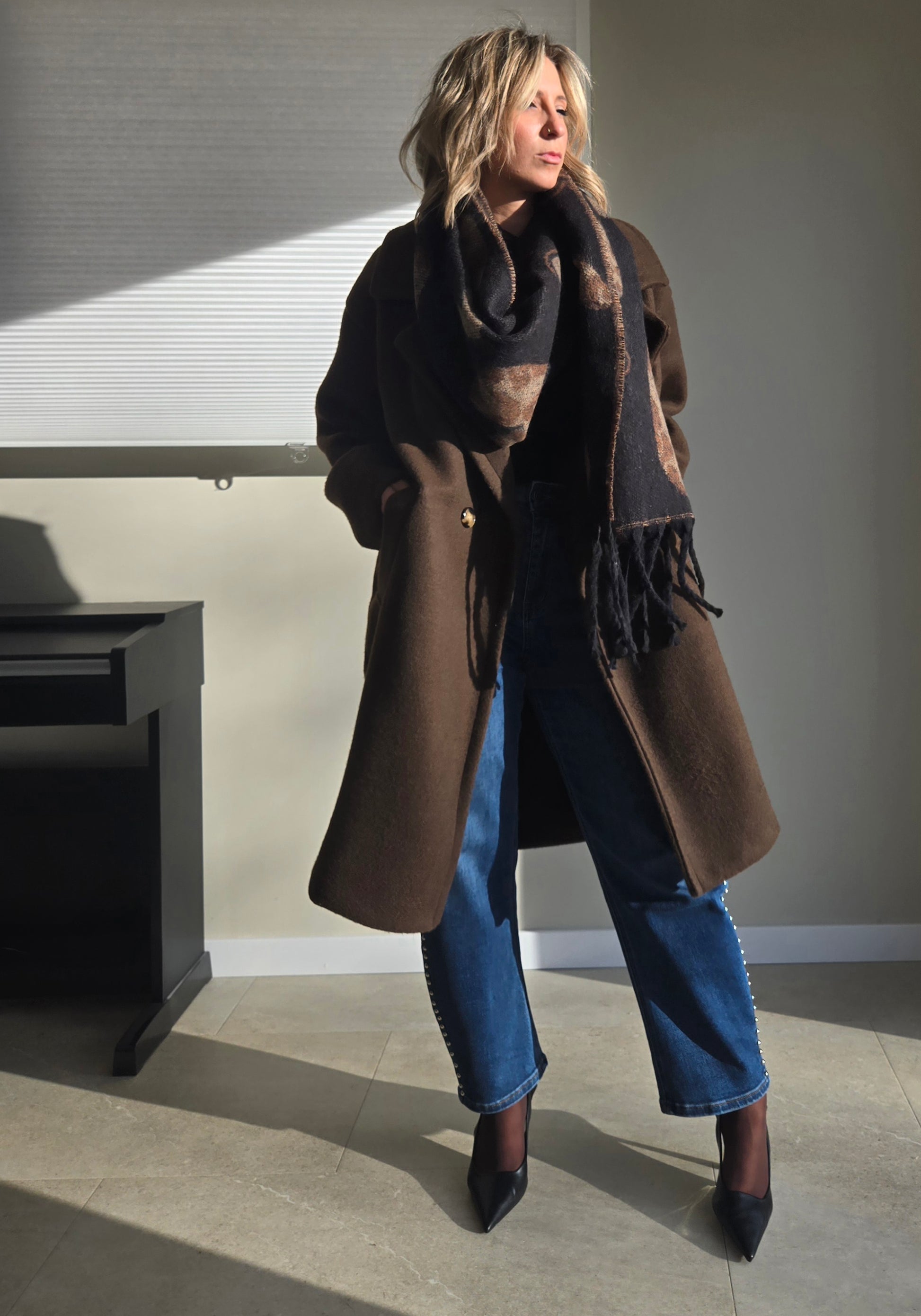 L’Écharpe ELMA : épaisse, ornée de cœurs avec ses petites franges. Un accessoire qui impose sa présence et affirme votre style sans compromis.