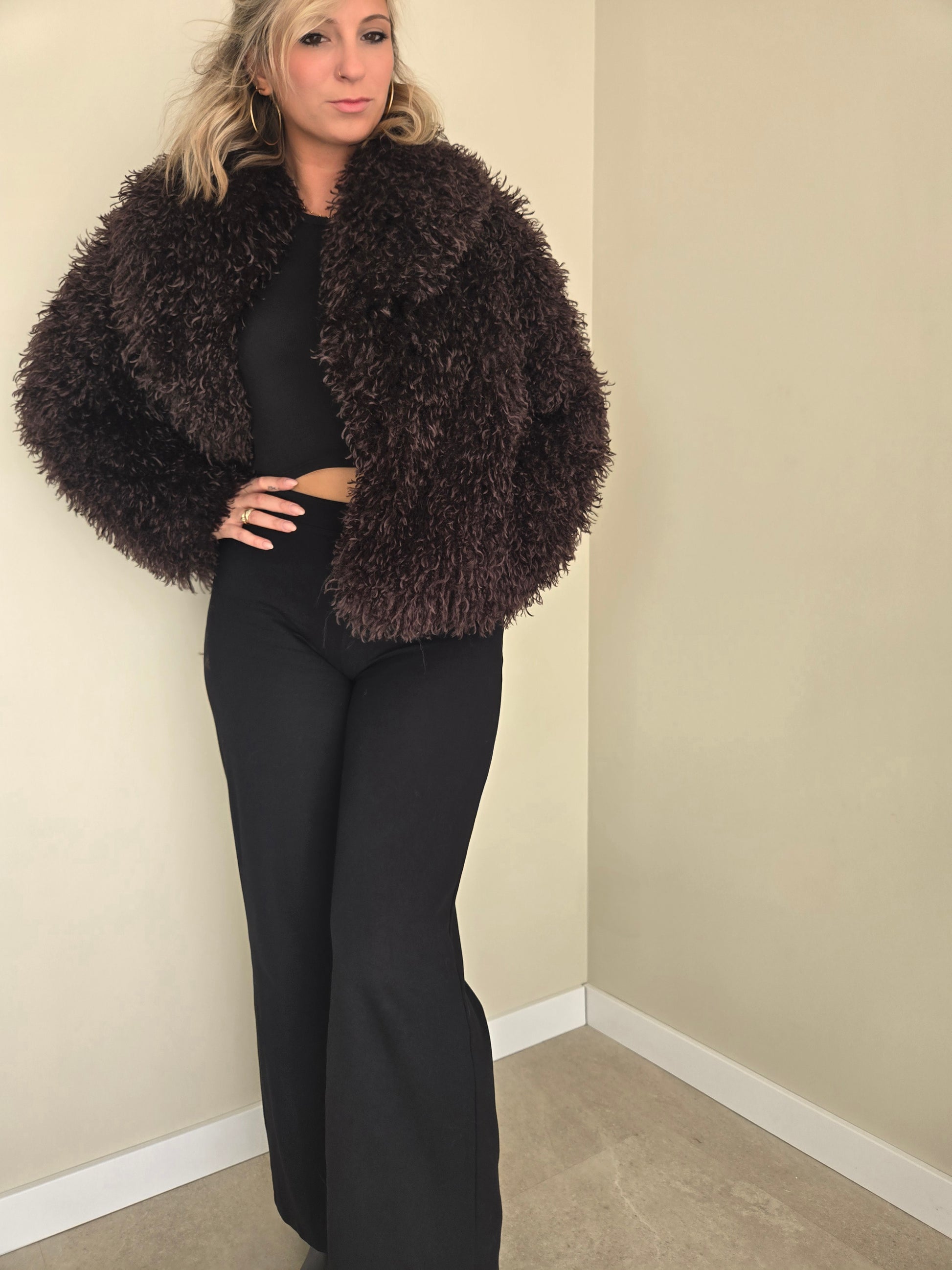 Le manteau Fourrure Bouclette BLIVIA réinvente la mode avec sa texture bouclée unique.