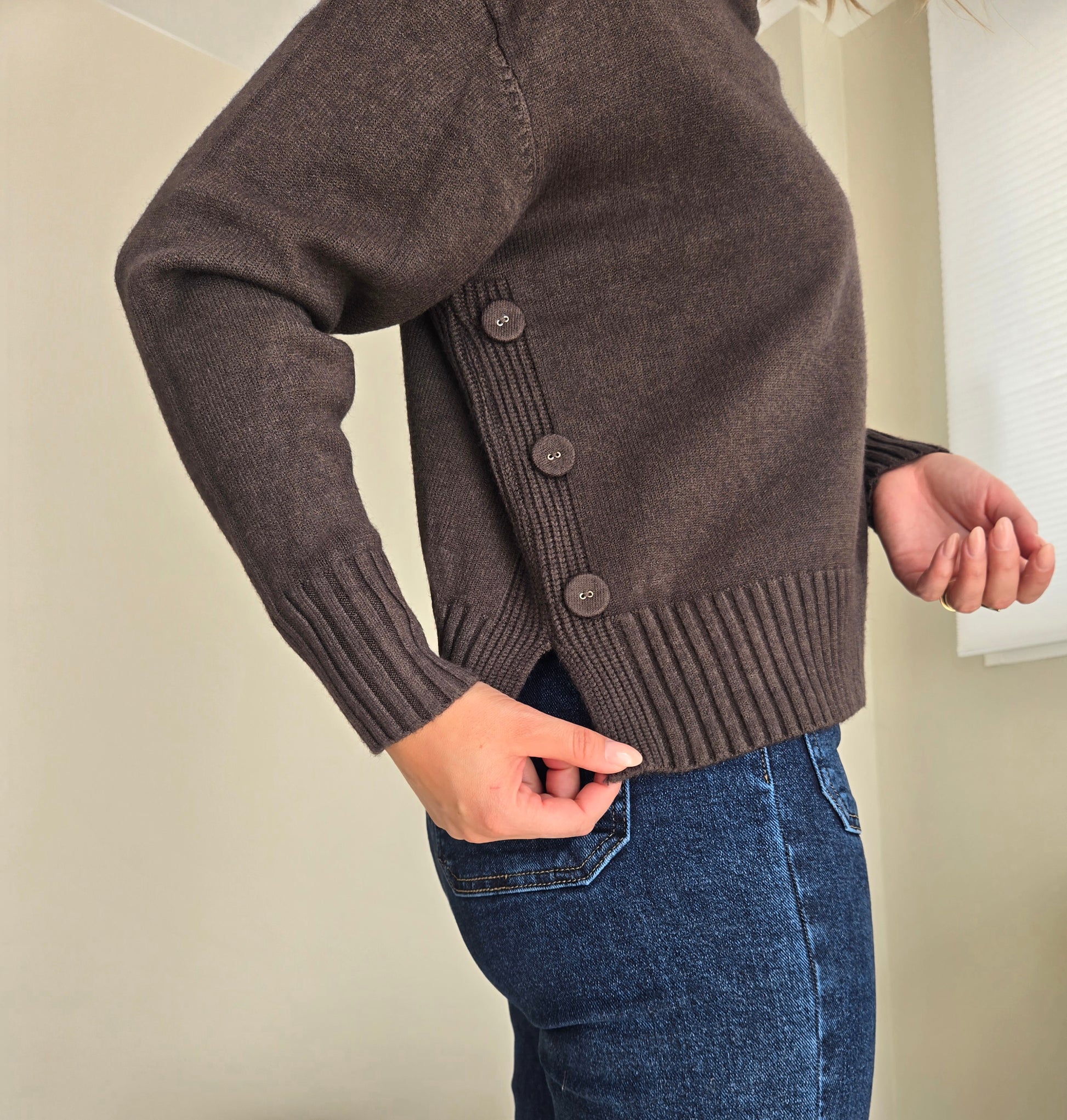 Le pull LAURA séduit par ses boutons originales sur le côté. Confortable et moderne, il sublime votre silhouette et affirme votre personnalité.