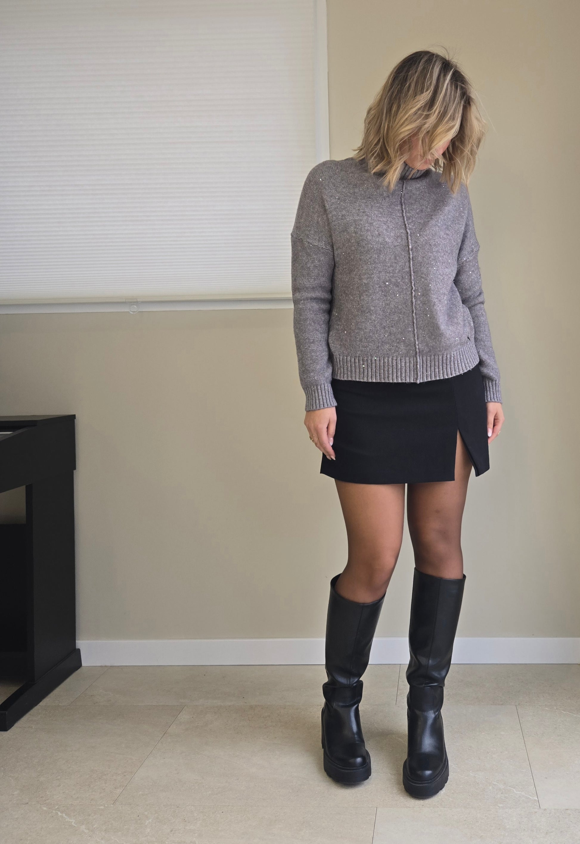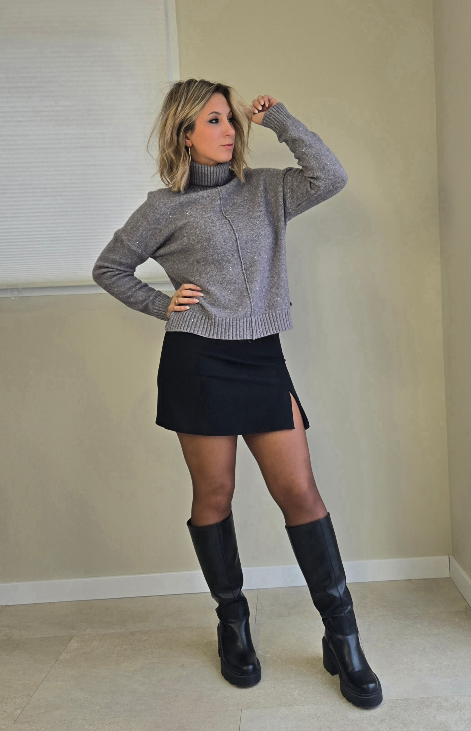 Pull MAGIC Gris et strass : la pièce incontournable qui allie audace et confort. Enveloppant et doux, ce pull incarne l'élégance sans compromis.