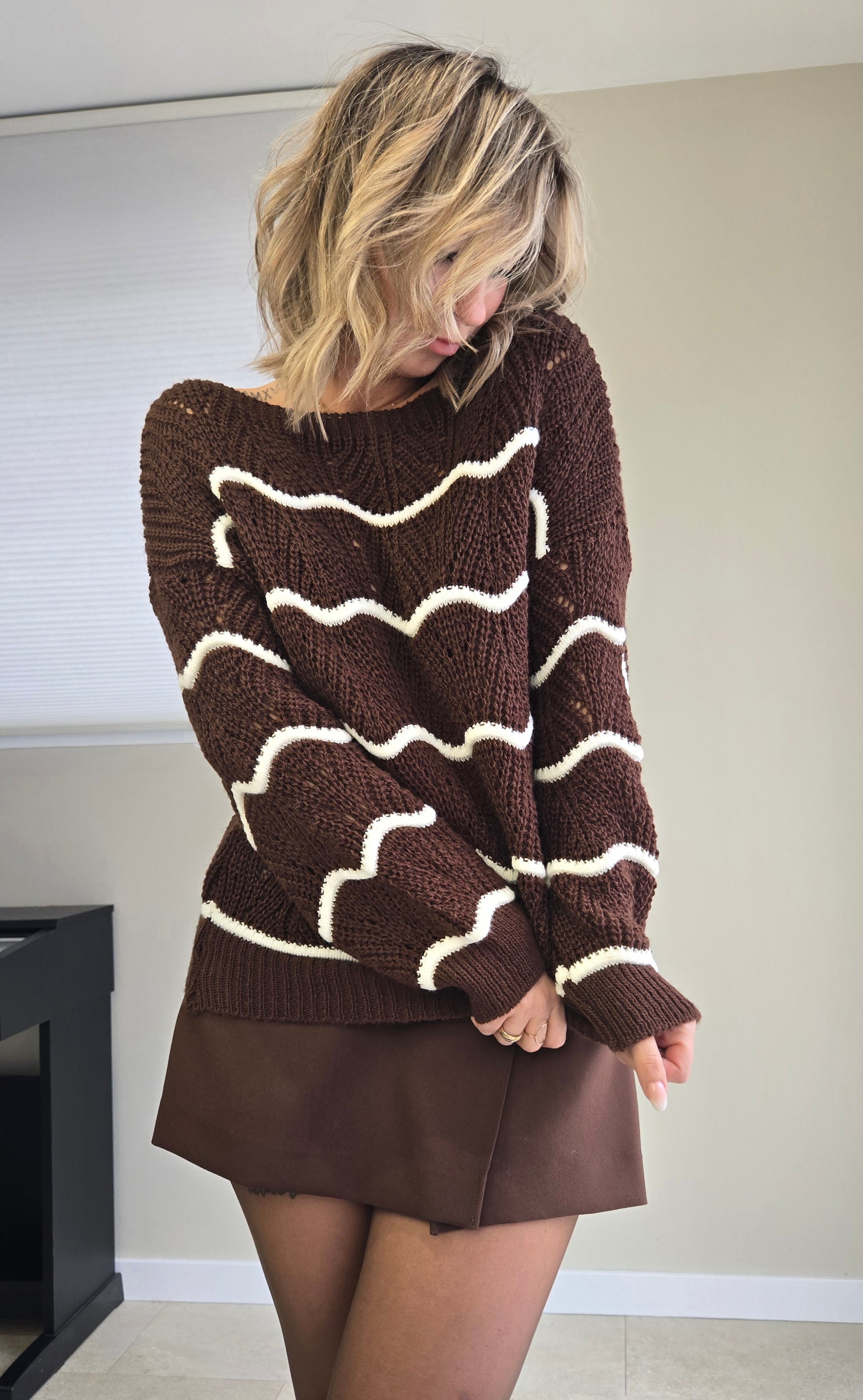 Découvrez le Pull rayé TESSA, Marron aux rayures blanche, ce pull est conçu pour celles qui osent affirmer leur singularité.