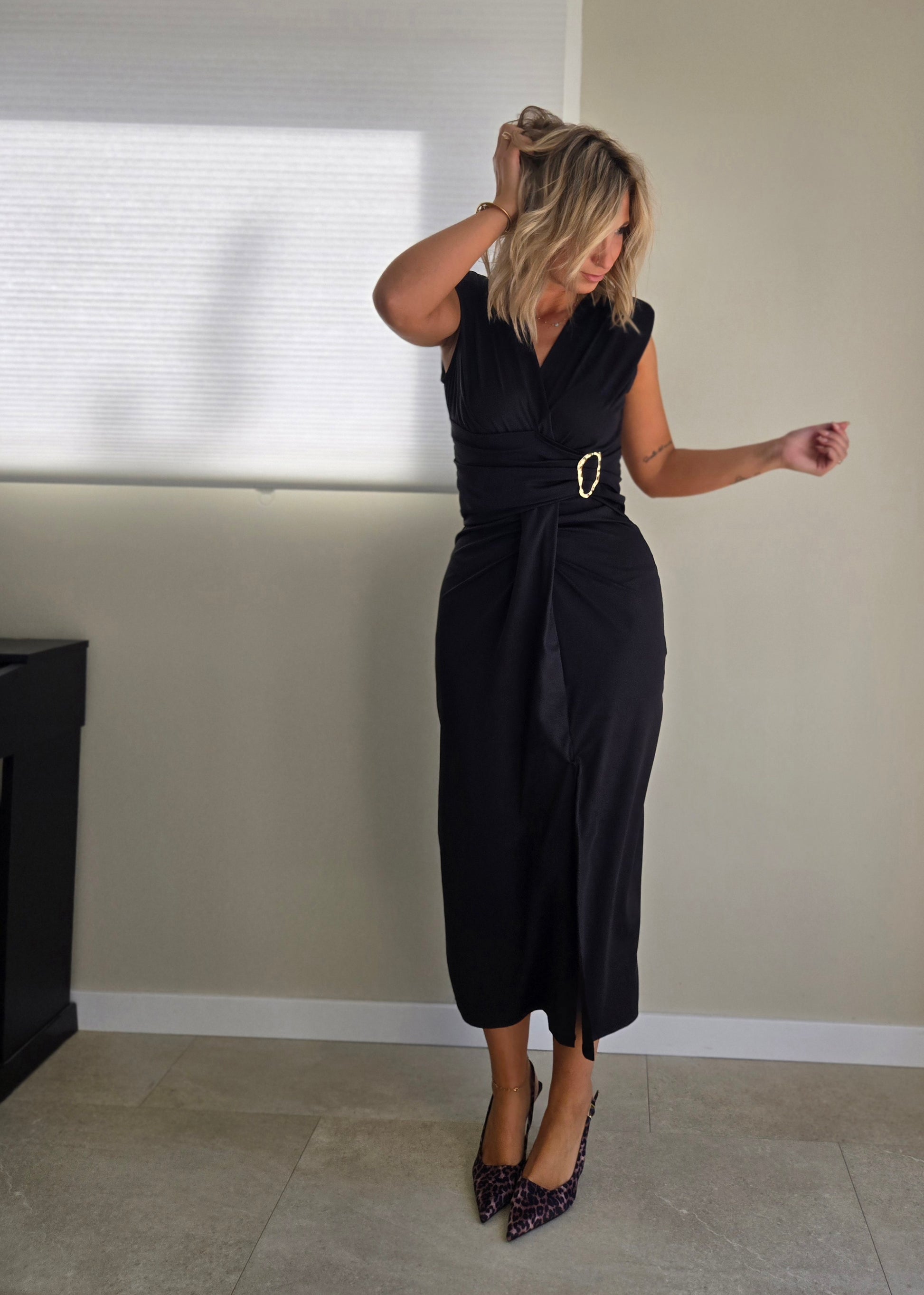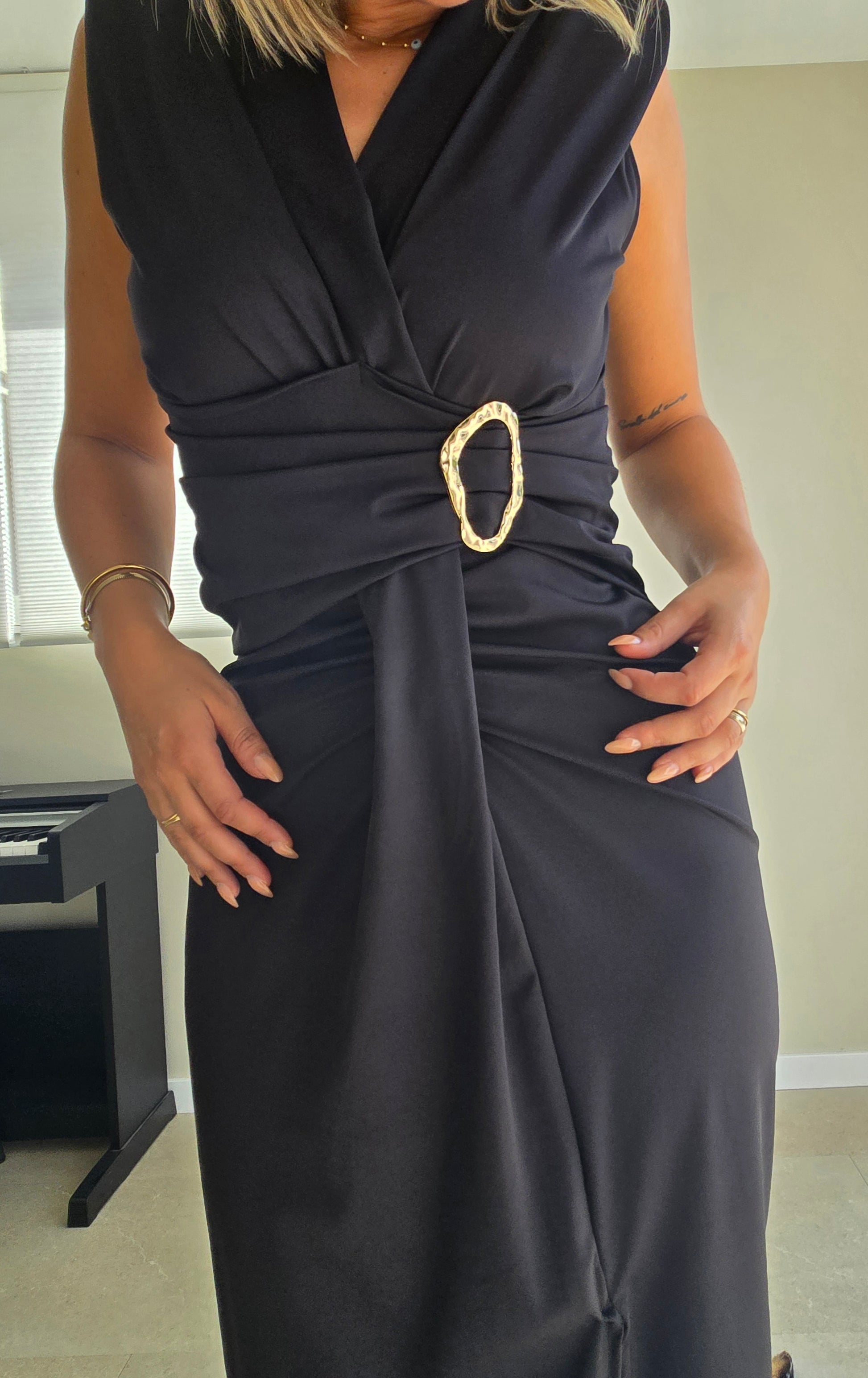 La robe noire Ayden, élégante et raffinée, parfaite pour toutes vos occasions spéciales.