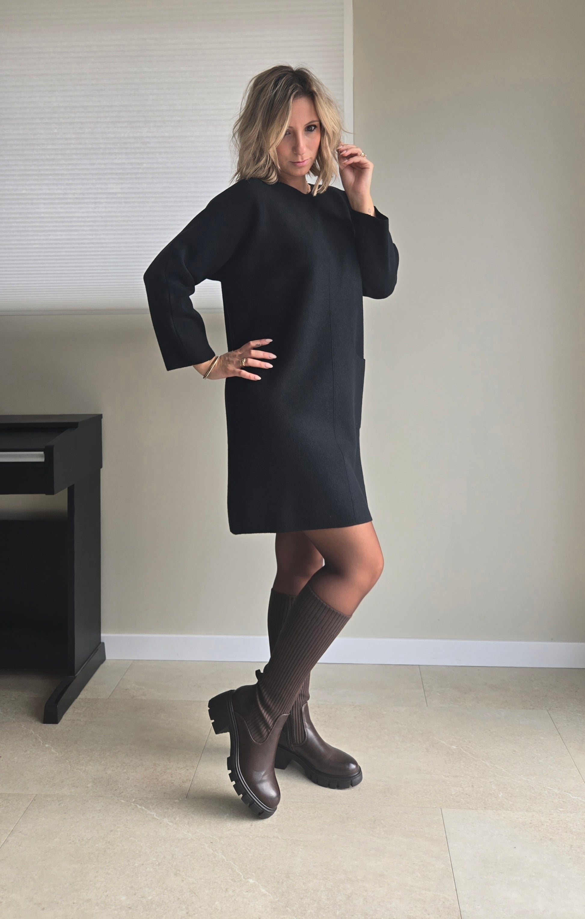 La robe NINA large affirme votre style avec assurance. Manches longues et poches intégrées L'essentiel réinventé avec caractère.