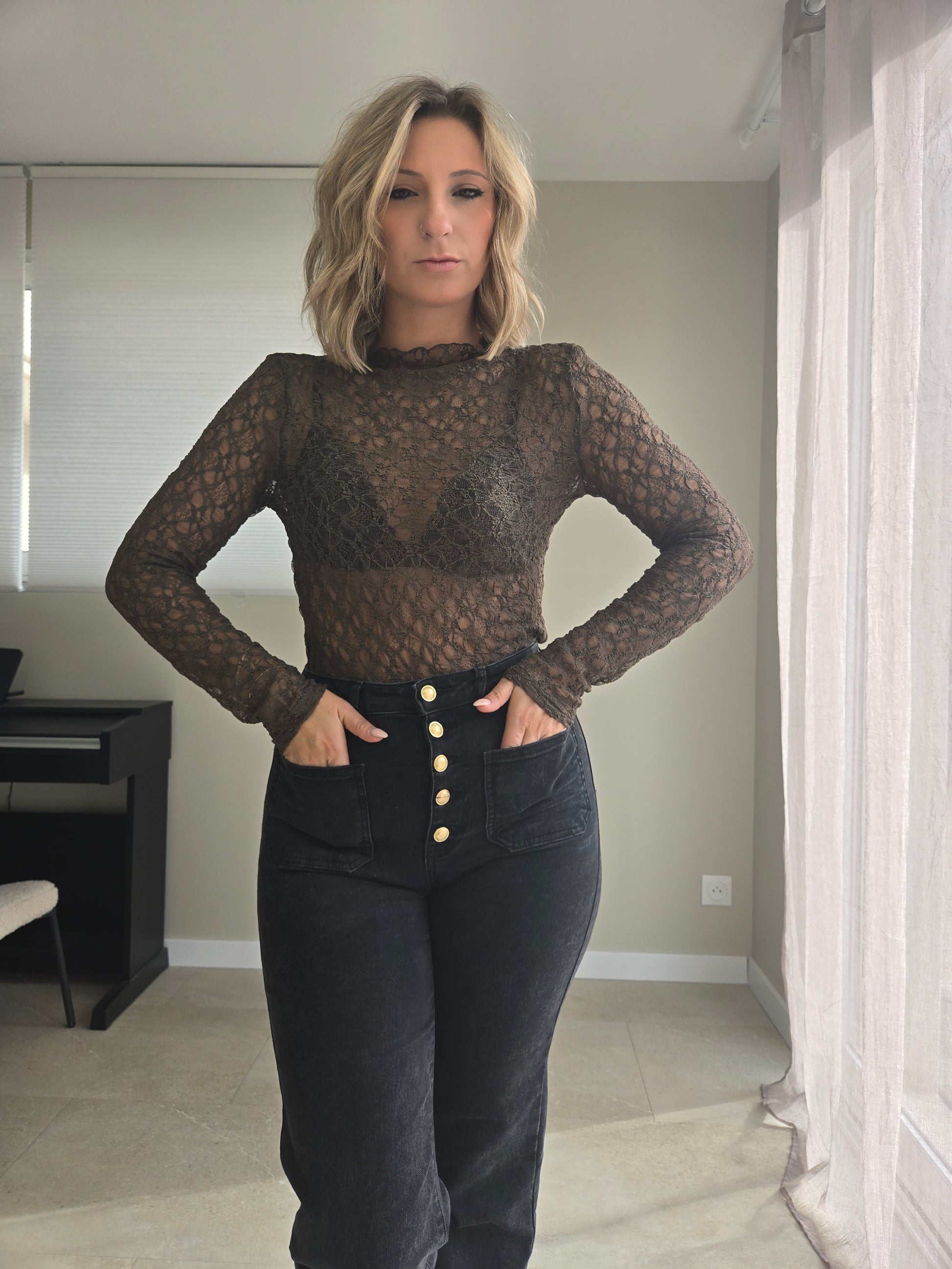 Top LELY en dentelle. Un confort optimal et une tenue impeccable. La dentelle délicate épouse votre silhouette avec élégance, créant un effet de transparence séducteur. À porter seul pour un impact maximal ou en superposition selon votre envie. Une pièce qui assume son charme.